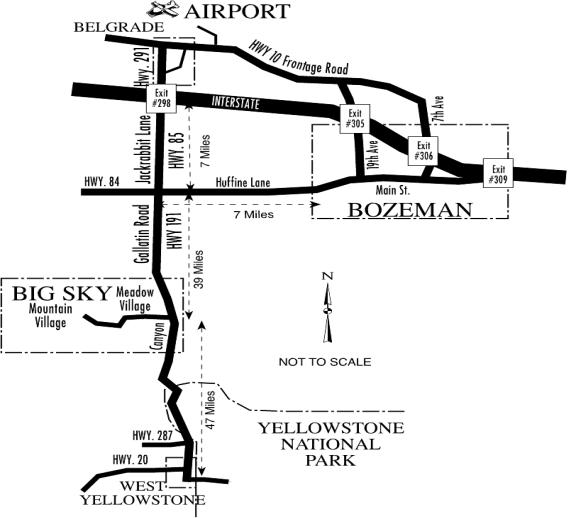 DIRECTIONS TO BIG SKY FROM THE GALLATIN FIELD AIRPORT: (See the maps)