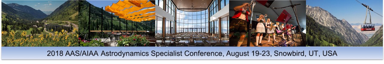 The 2018 AAS/AIAA Astrodynamics Specialist Conference hosted by the American Astronautical Society (AAS) and co-hosted by the American Institute of Aeronautics and Astronautics (AIAA) will be held August 19-23, 2018 at the Cliff Lodge in Snowbird, UT. The conference is organized by the AAS Space Flight Mechanics Committee and the AIAA Astrodynamics Technical Committee.